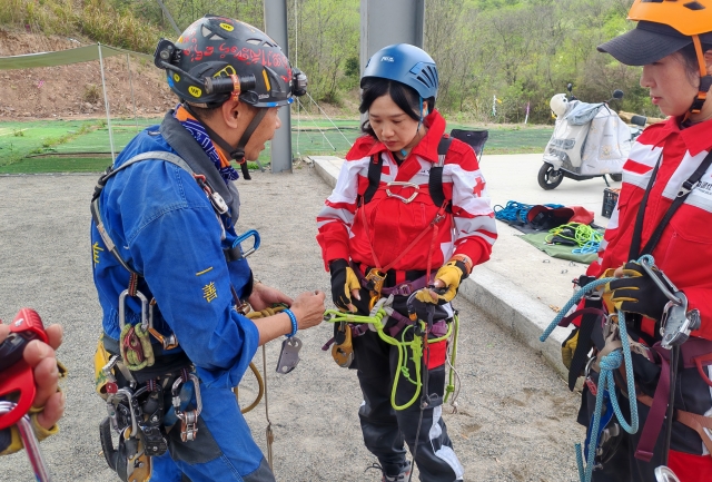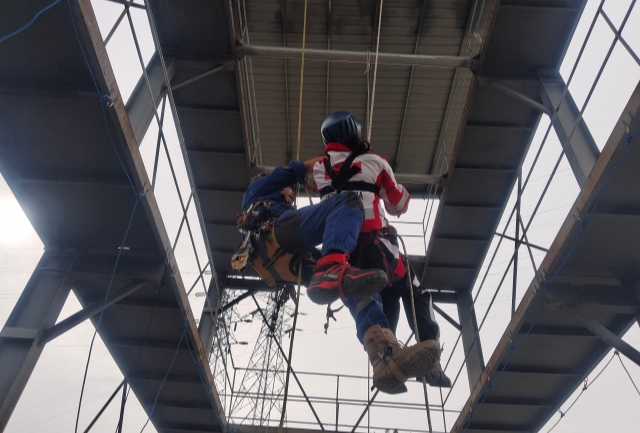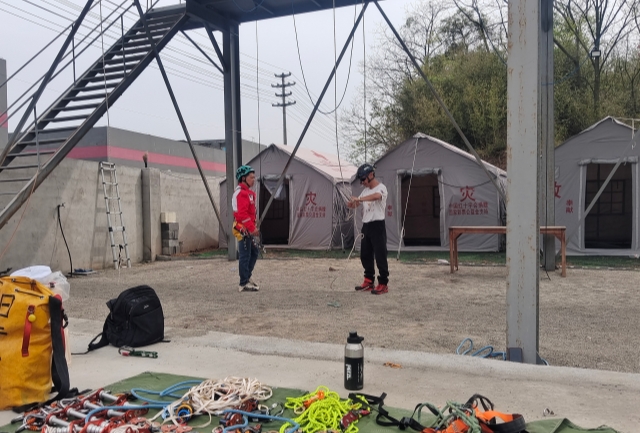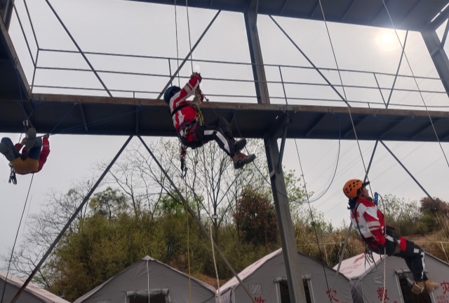 实操环节按照“从基础到进阶、从单人到协同”的方式逐步推进。一是基础技能巩固。重点强化上升下降技术的规范性,针对不同崖壁角度的速度控制、身体姿态调整、应急止坠操作等细节进行逐一纠偏。二是复杂场景突破。设置过绳结、过保护点、中途换绳等高难度科目,模拟救援过程中绳索受损、锚点移位等突发情况,训练队员的应急处置能力。三是一对一救援技术。从接近被困者、伤情评估、安全挂接、协同下降等全流程进行标准化教学,特别强调对被困者的情绪安抚和二次伤害防护。