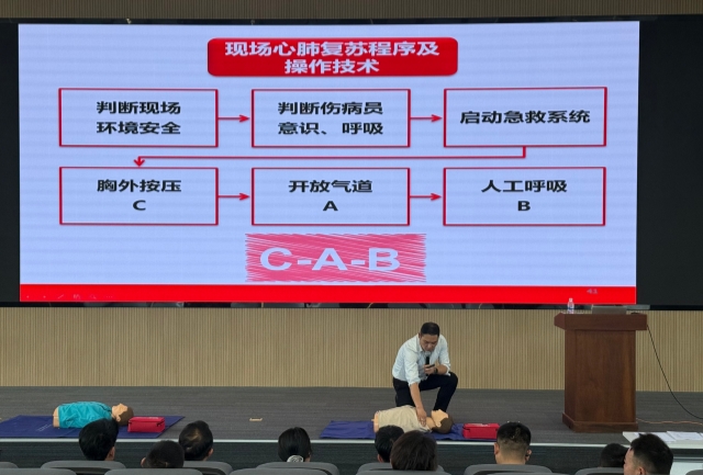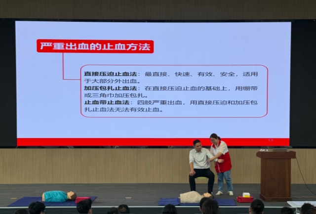 本次培训由红十字志愿者、省级救护培训师郑明和省级救护培训师、市红十字会赈济救护部部长钟甜主讲,采取理论授课与实操练习相结合的方式。重点讲解了红十字基本知识、救护新概念、心肺复苏术(CPR)、自动体外除颤器(AED)、气道异物梗阻和创伤救护等急救知识,同时现场示范规范操作流程,指导员工逐一进行心肺复苏和创伤救护操作并考核,参训者均顺利通过理论和实操考核。